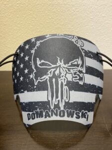 Our custom shield images are heat pressed directly into the shield plastic during manufacturing, not painted or inked.